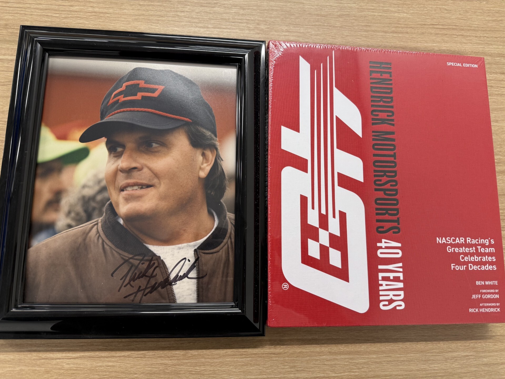 But that's the tip of the iceberg. Also in the mix is a framed photo of Hendrick Motorsports owner, Rick Hendrick, signed by Mr. H himself. For good measure, Sam also threw in a 40th-anniversary hardcover book, an essential for any fan of the organization.