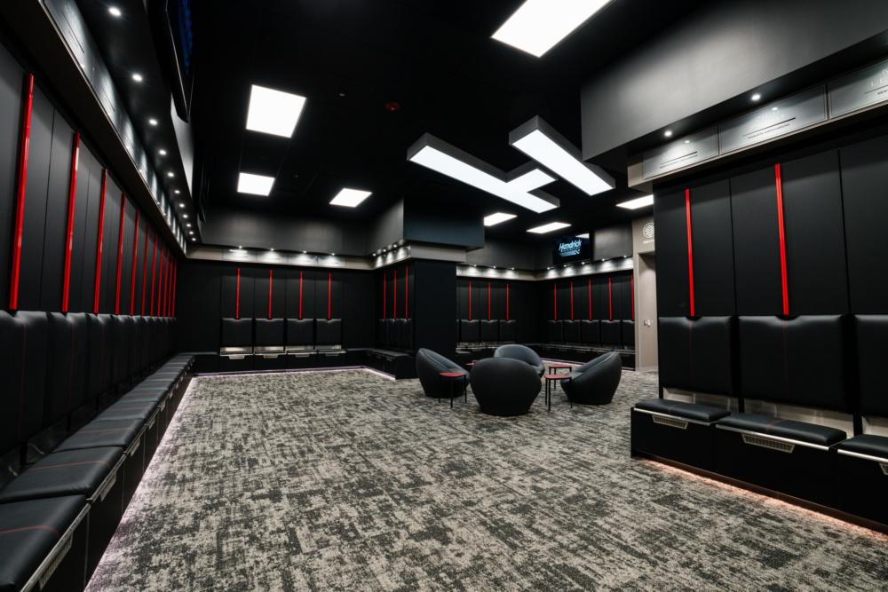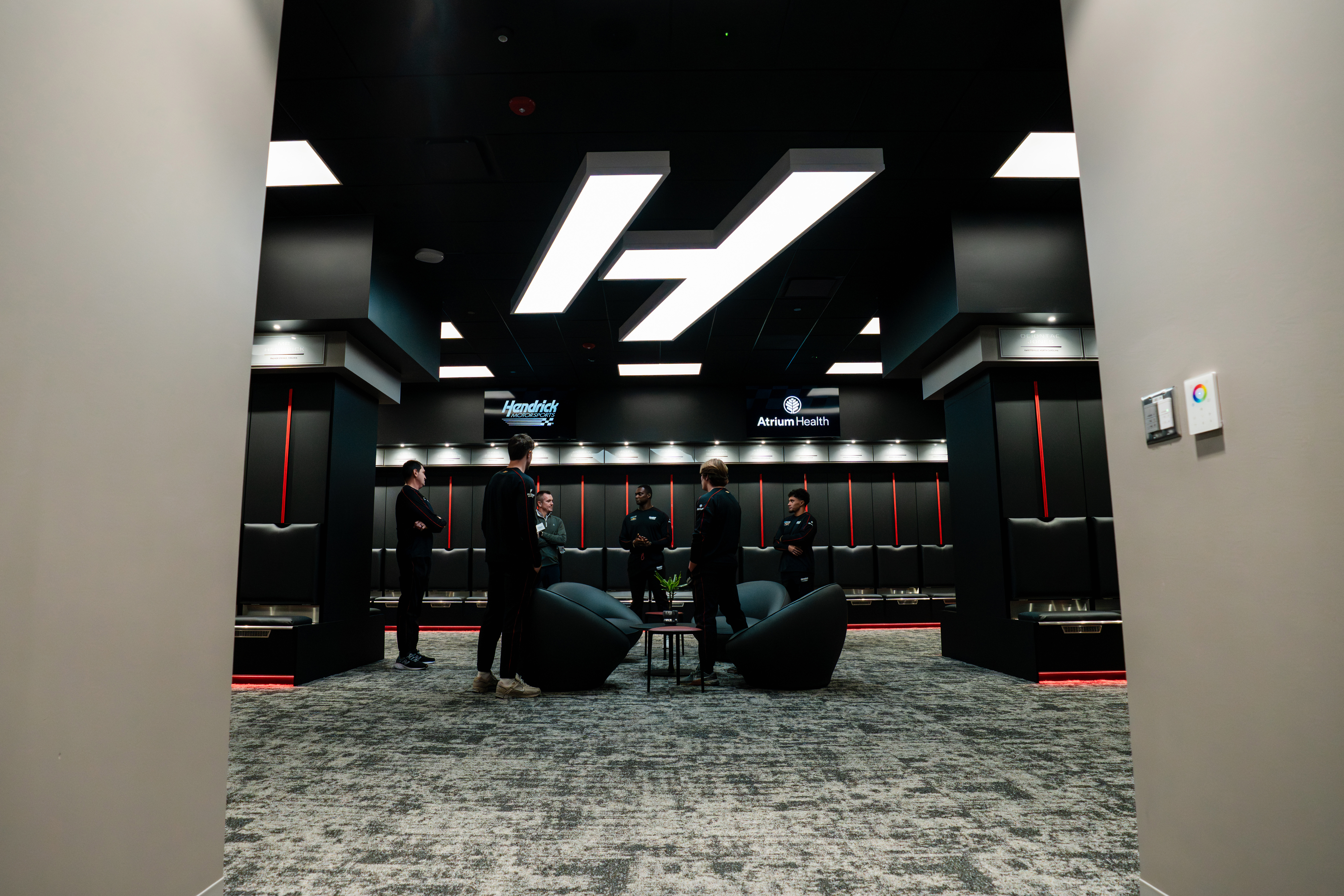 A look into the locker room of the newly unveiled Atrium Health Motorsports Athletic Center.