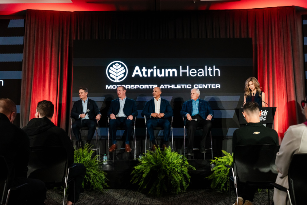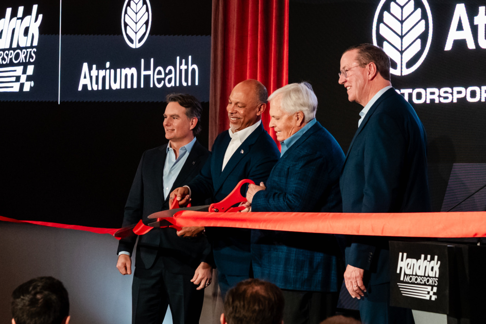 From left: Hendrick Motorsports vice chairman Jeff Gordon, Atrium Health Musculoskeletal Institute president Dr. Claude Moorman, chief executive officer of Advocate Health Gene Woods and Hendrick Motorsports owner Rick Hendrick.