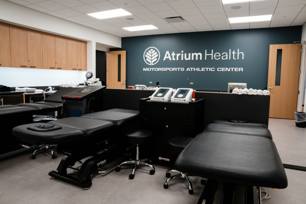 The Atrium Health Motorsports Athletic Center was officially unveiled in front of media and invited guests as part of a ribbon-cutting ceremony on Thursday afternoon. Hendrick, chief executive officer of Advocate Health Gene Woods, Atrium Health Musculoskeletal Institute president Dr. Claude Moorman and NASCAR Hall of Famer and Hendrick Motorsports vice chairman Jeff Gordon were on hand and on stage to start the proceedings.