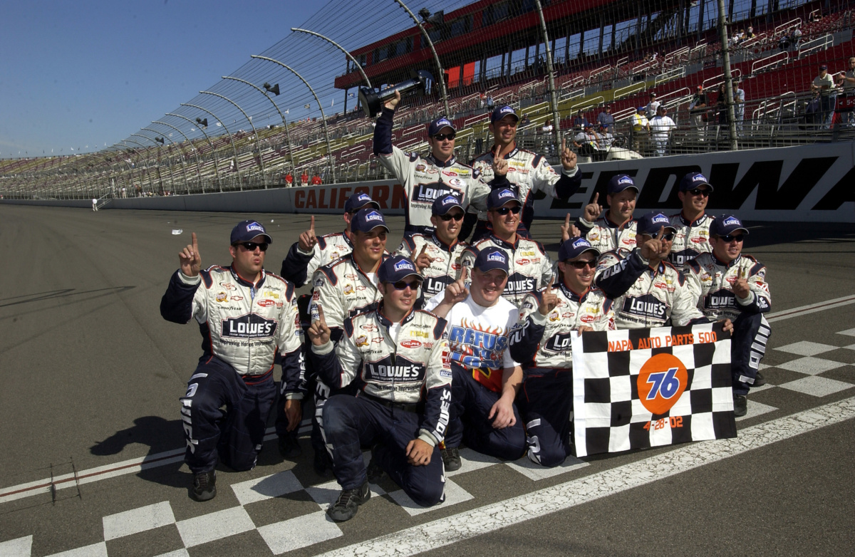April 28, 2002 – Jimmie Johnson was in his first full-time season as a Cup driver and he was eager for his first win. In only his 13th start, Johnson did just that, and he grabbed the checkered flag for the first time in none other than his home state of California. It was Johnson's first of three wins in the 2002 season, and he finished fifth in the final point standings.