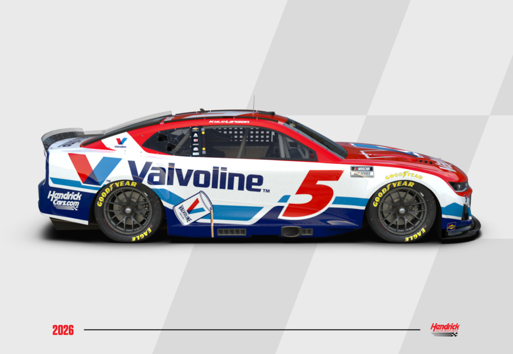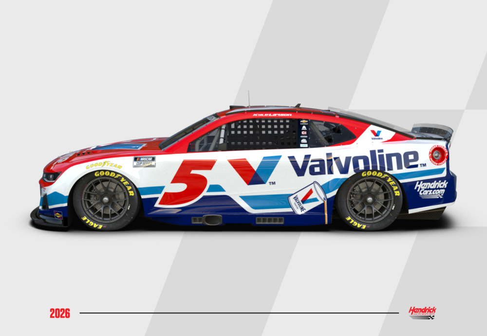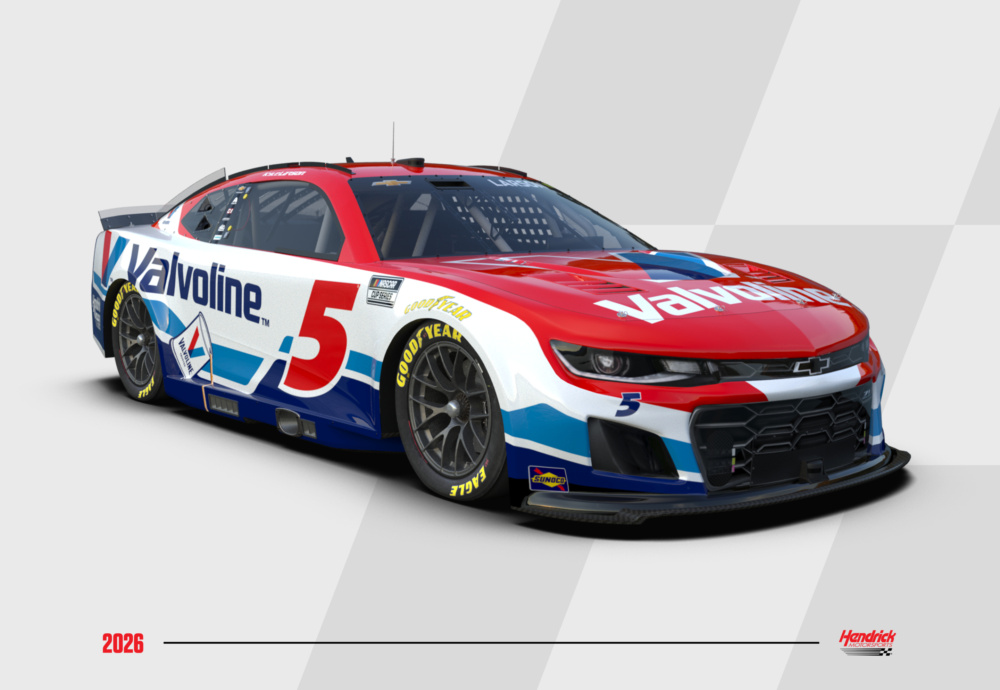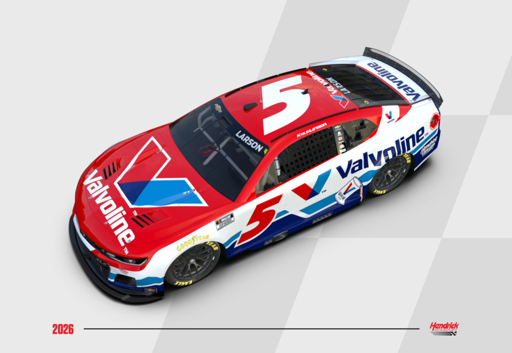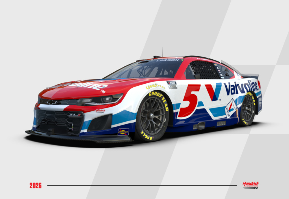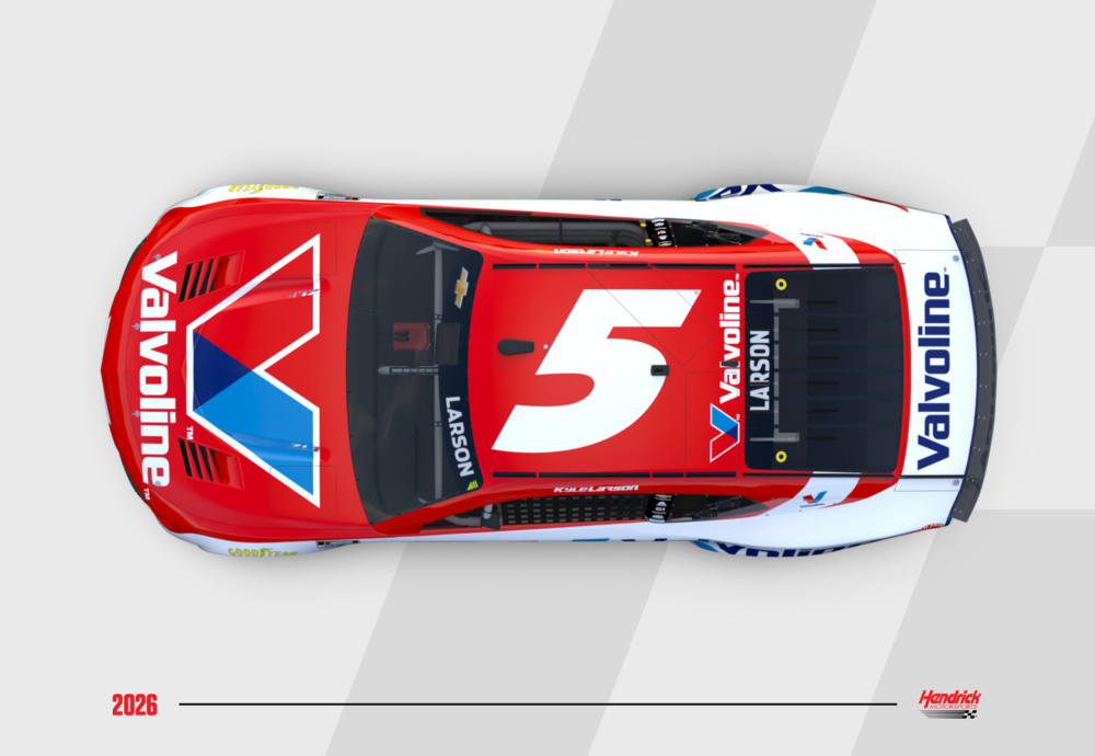 Kyle Larson will drive this No. 5 Valvoline Chevrolet for Hendrick Motorsports during select races on the 2026 NASCAR Cup Series schedule.