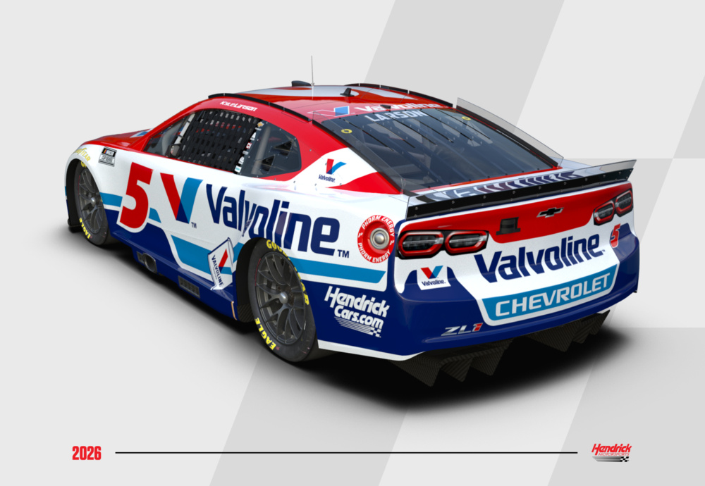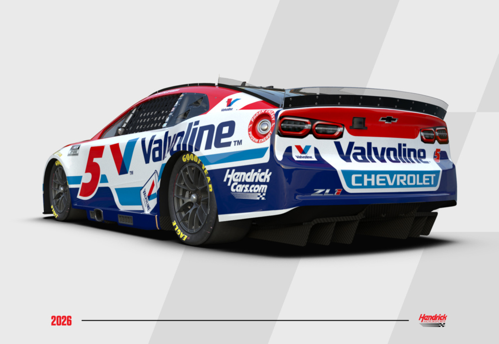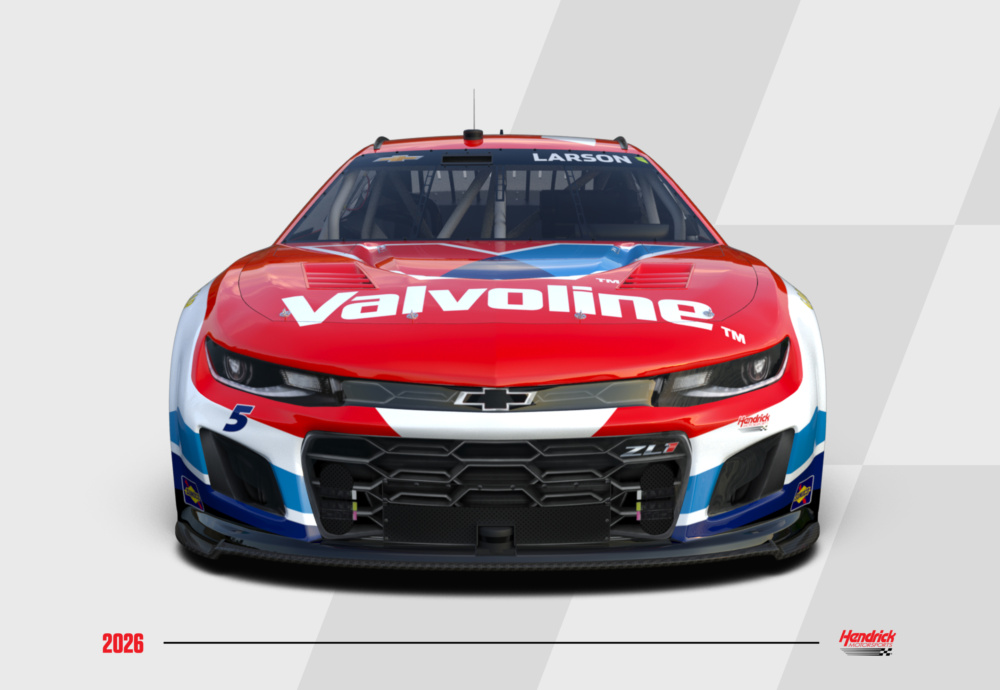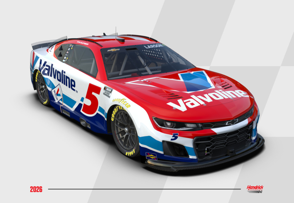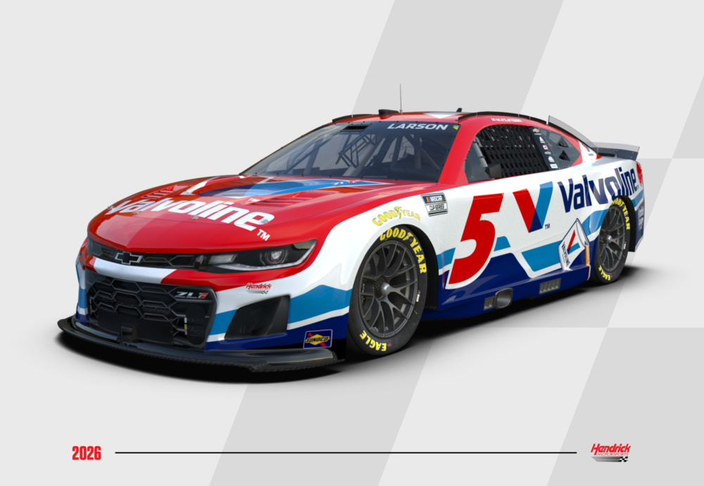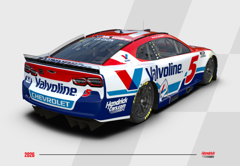 Kyle Larson will drive this No. 5 Valvoline Chevrolet for Hendrick Motorsports during select races on the 2026 NASCAR Cup Series schedule.