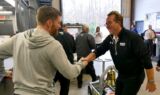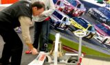 Dale Earnhardt Jr. brings the Victory Bell around Hendrick Motorsports to celebrate his Phoenix win with teammates.